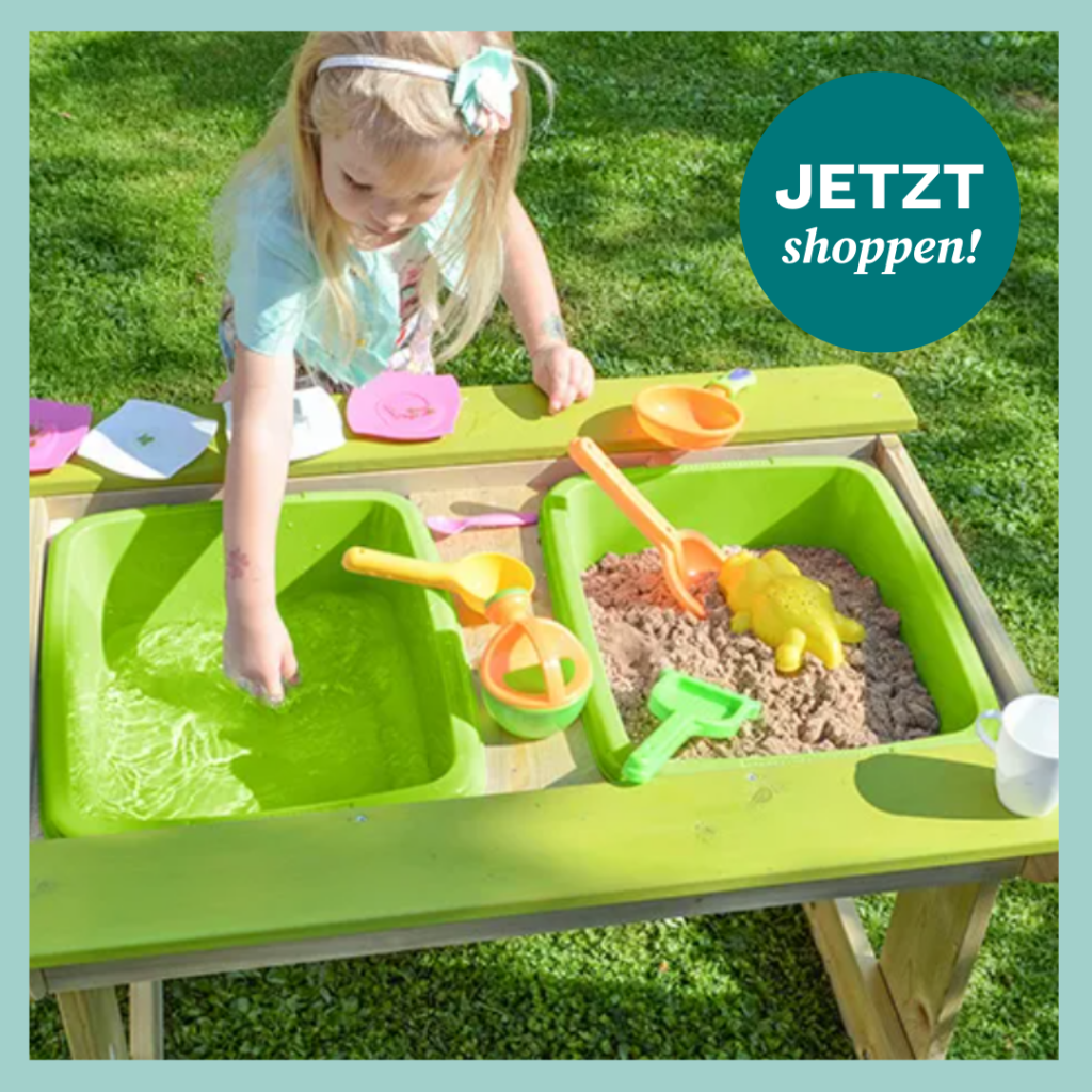 Matschburgen bauen, Kuchen backen oder einfach nur sitzen und snacken – an dem Spieltisch* ist vieles möglich. Sichert euch daher das Must-have für den Sommer jetzt schon.