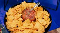 - In der Zwischenzeit die Tomaten, Knoblauch und Zwiebel klein hacken und gut vermengen, bis eine homogene Masse entsteht. Mit Olivenöl, Zitronensaft und Gewürzen nach Wahl abschmecken und gut umrühren – schon könnt ihr die Nachos genießen!