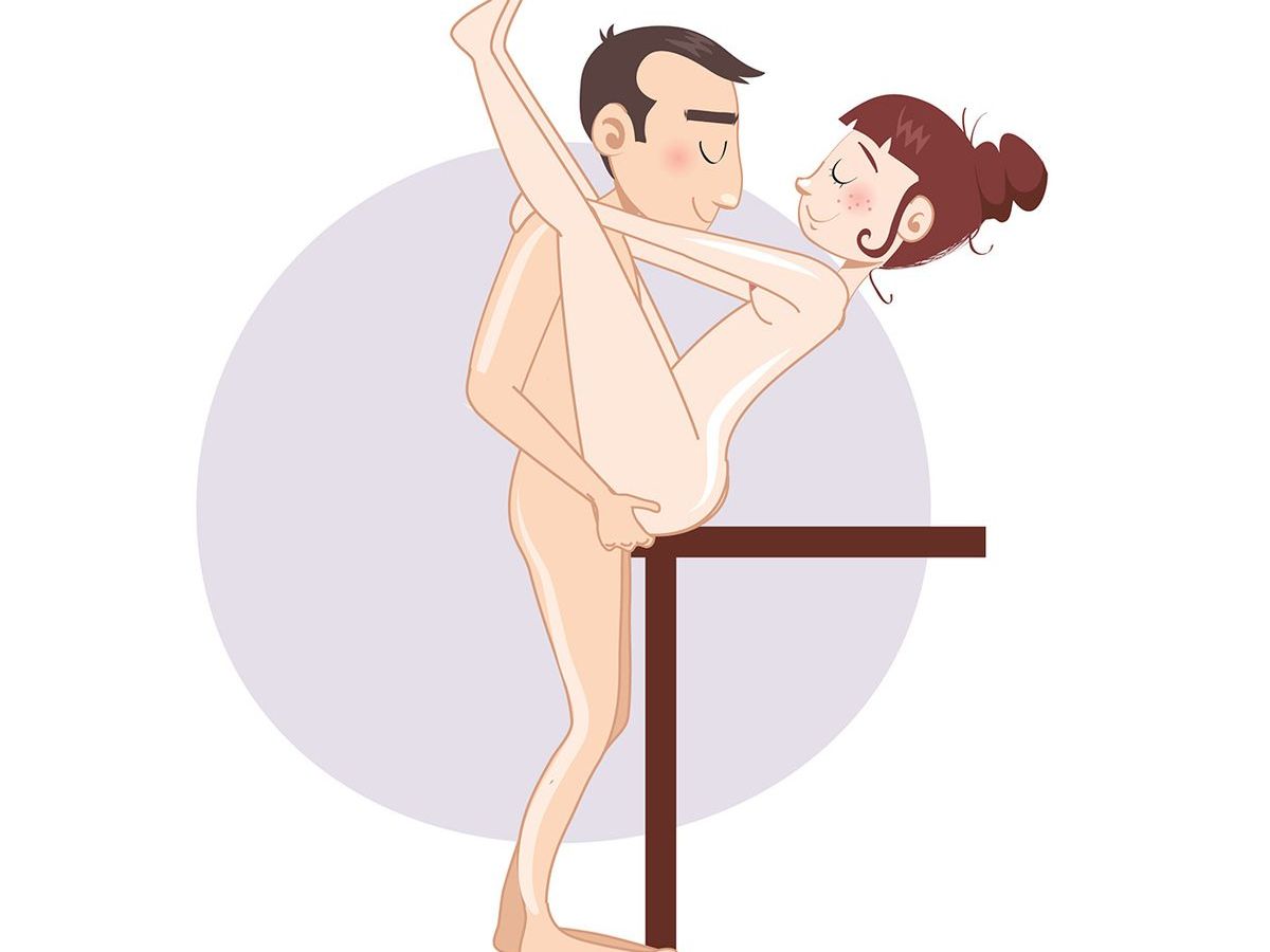 Diese Stellung verlangt akrobatische Fähigkeiten! Aufgepasst: Die Frau setzt sich als erstes auf eine Tischkante. Er stellt sich vor sie, die Beine leicht gebeugt.