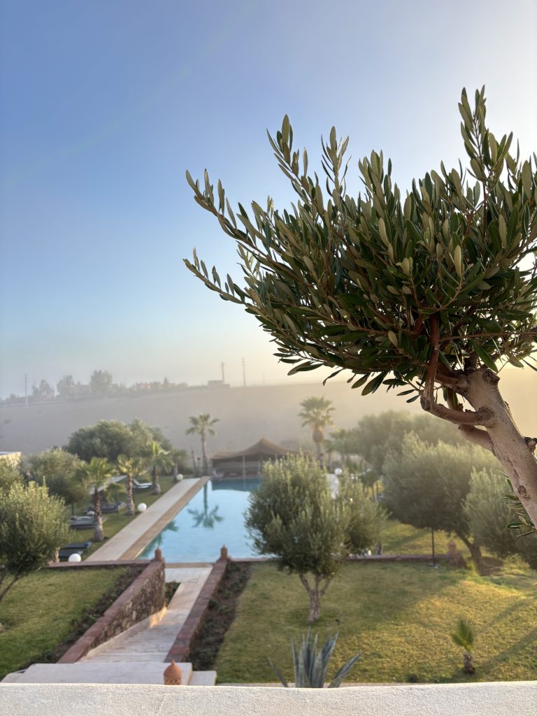 Vom Flughafen aus ging es direkt in unsere Unterkunft: Die Shemsmoon-Villa, die zu den Ferienhäusern des Jahres 2025 von FeWo-direkt gehört, ist knapp eine halbe Stunde vom Flughafen Marrakesch entfernt und bietet ein außergewöhnliches Ambiente. Als wir angekommen sind, wurden wir mit typisch marokkanischen Minztee begrüßt, sowie ein paar Snacks.