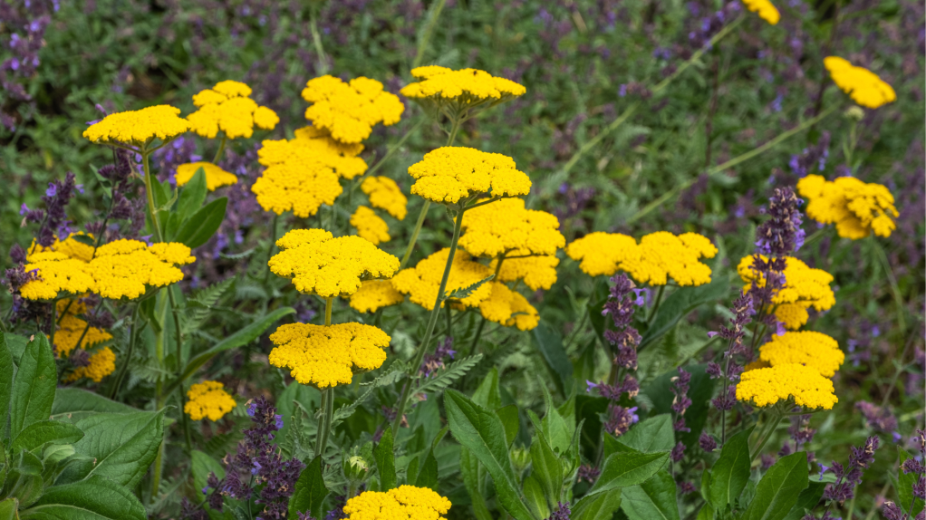 Die Schafgarbe ist ein unkomplizierter Dauerblüher, der auch in trockenen Sommern zuverlässig Farbe liefert. Ihre flachen Blütenteller leuchten in Weiß, Gelb, Rosa oder Orange und ziehen zahlreiche Insekten an. Schafgarbe passt wunderbar in naturnahe Beete, in Kombination mit Lavendel, Salbei oder Zierlauch.