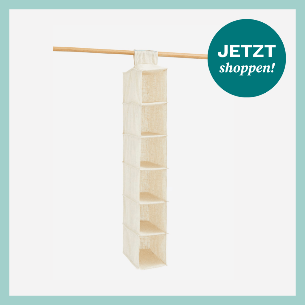 Ein hängender Organizer aus Leinenstoff, der einfach an der Kleiderstange befestigt wird und mit sechs geräumigen Fächern für Ordnung sorgt – einfach genial! Er nimmt kaum Platz weg, ist superleicht zu montieren und sieht mit seinem minimalistischen Design auch noch richtig stylish aus. Und das für gerade mal 19,99 Euro – ein echtes Schnäppchen für so viel extra Stauraum. Du bekommst ihn hier bei H&M Home.*