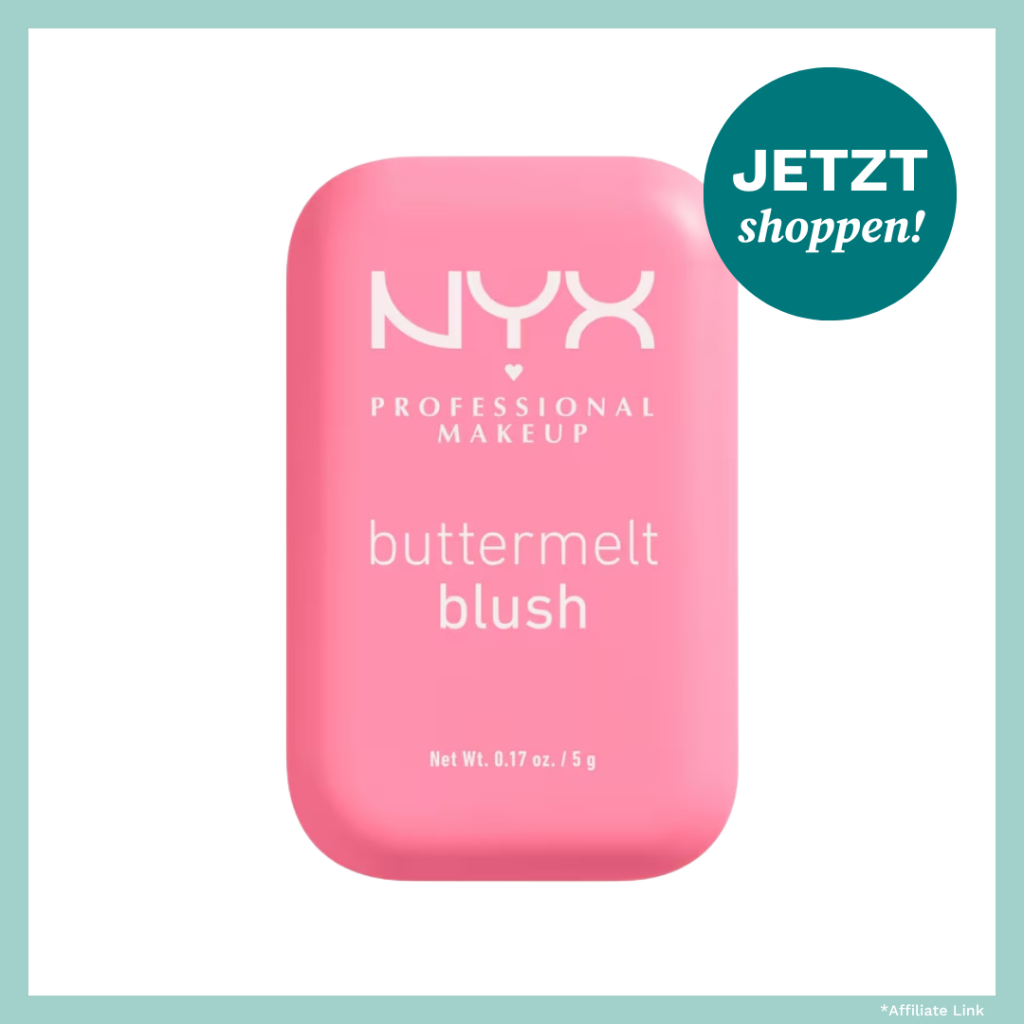 Der Blush ist das Herzstück des Looks. Er verleiht dem Gesicht Frische und Lebendigkeit. Wähle einen cremigen Blush in einem sanften Rosaton, wie zum Beispiel den Buttermelt Blush von NYX* und tupfe ihn auf die Wangen. Verblende die Farbe leicht nach außen und oben. Wer mag, kann zusätzlich einen kleinen Hauch auf Nasenspitze und Kinn geben.