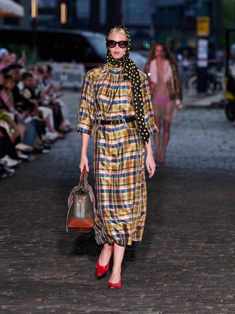 Als hätten sie das wechselhafte Wetter in Kopenhagen vorhergesehen, schickten Labels wie Skall Studio, Caro Editions oder Rave Review ihre Models mit um den Kopf gebundenen Tüchern über den Laufsteg. Ein praktischer und zugleich stylischer Schutz vor Sonne und Wind, der jedes noch so schlichte Outfit im Handumdrehen aufwertet. Besonderes Modegespür beweist du, indem du das Accessoire der Stunde mit weiteren Trends wie Spitze oder Polka Dots ergänzt.