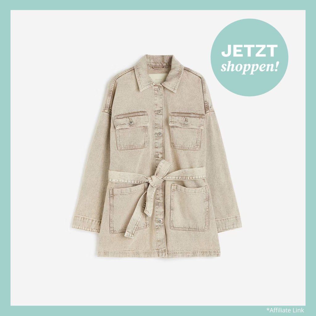 Auch wenn wir immer wieder dazu neigen, kurzweiligen Trend nachzulaufen, wollen wir uns doch eigentlich auch von anderen abheben, oder? Mit dieser Jacke* tut ihr das allemal, denn die beigefarbene Denimjacket mit ihrem oversized Schnitt und dem Bindegürtel sind einfach mal was anderes, als die 0815 Jeansjacken, die man so kennt.