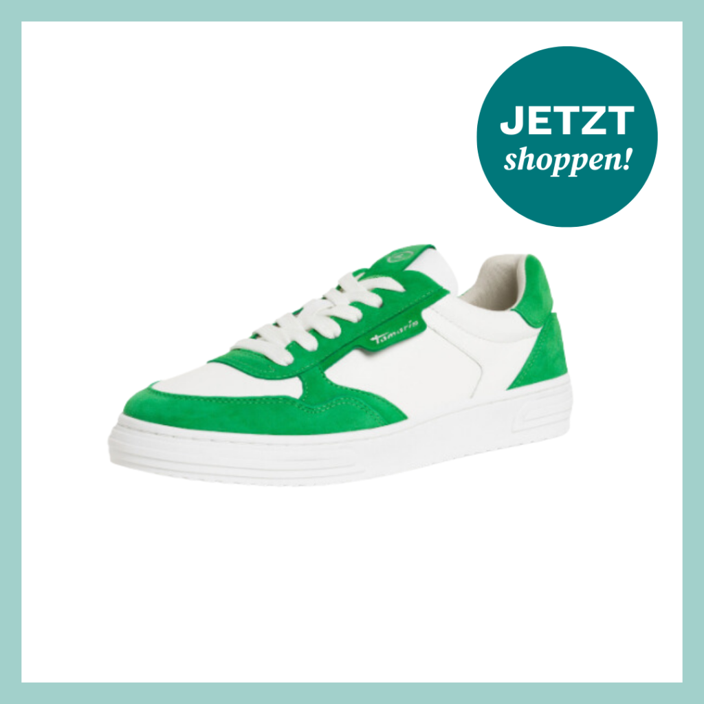 Wer hätte das gedacht? Ein Bestseller im Sortiment von Tamaris ist dieser Two-Tone-Sneaker, den es in unfassbar vielen unterschiedlichen Farben gibt. Waren bisher eher Retro-Sneaker angesagt, scheint es den Trendsettern besonders das grün-weiße Modell angetan zu haben.