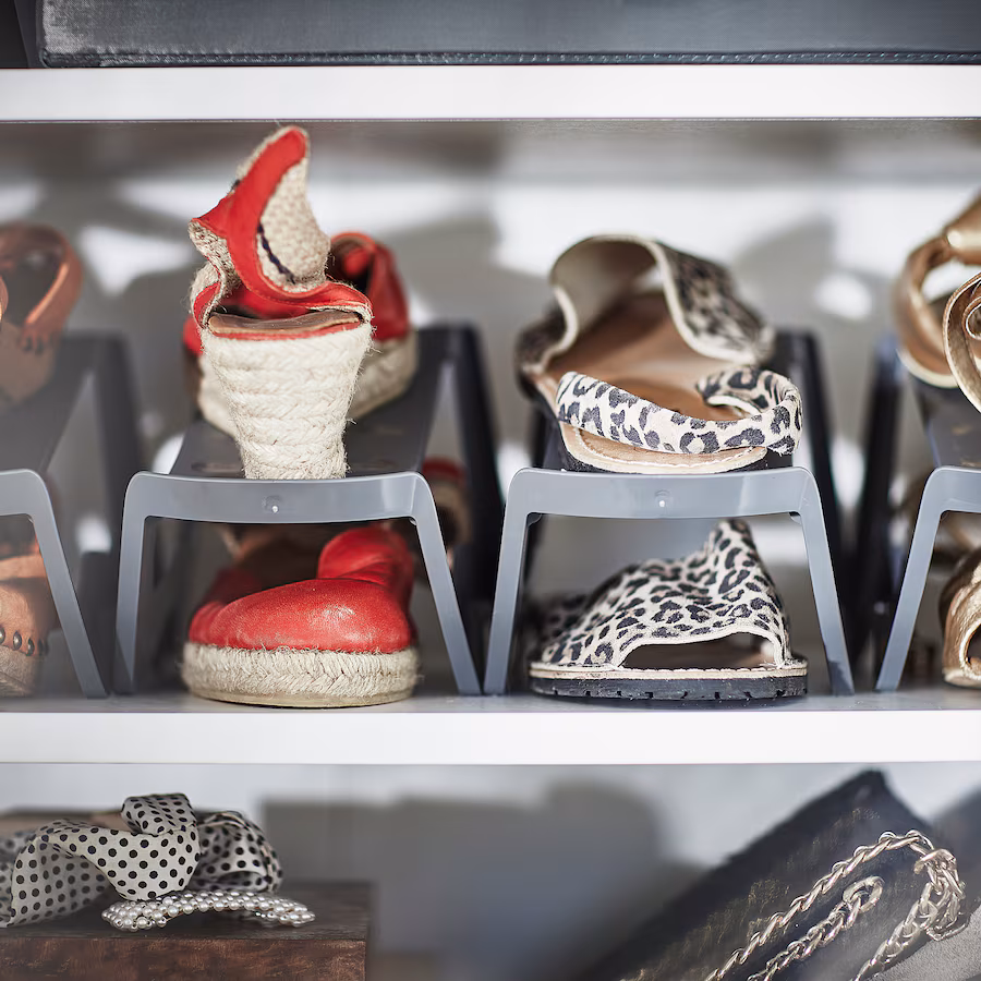 Richtig, das hieße, dass du fortan doppelt so viele Schuhpaare in deinem Schuhregal unterbringen könntest. Mit diesem praktischen Schuhstapler kannst du einfach zwei Schuhe übereinander anordnen.